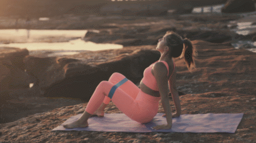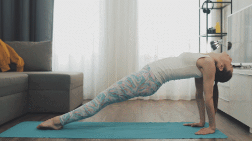 매트에 앉아서 다리는 펴줍니다. 손을 바닥으로 누르면서 엉덩이를 들고, 테이블 모양으로 자세를 만드세요. 엉덩이를 내렸다가 드는 동작을 반복하면 되는데요. 1분 동안 업다운 동작을 진행합니다. 다리 사이에 밴드를 끼우면, 효과를 높일 수 있습니다.