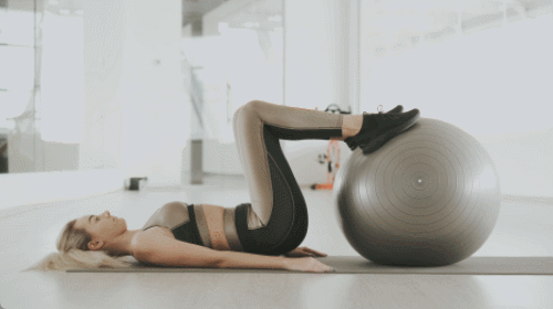 짐볼을 활용하여 브릿지 운동 효과를 높일 수 있습니다. 짐볼 위에 발을 올리고 매트에 누워서 준비하세요. 등을 공중으로 띄우면서 브릿지 자세를 만듭니다. 엉덩이를 내리면서 원래 자세로 돌아오세요. 1분 동안 업다운 동작을 진행합니다.