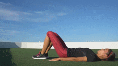 매트에 등을 대고 누워서 무릎을 세웁니다. 팔은 바닥에 고정하고, 엉덩이를 들어서 브릿지 자세를 만드세요. 엉덩이를 바닥으로 내렸다가 드는 업다운 동작을 반복합니다. 1분 동안 운동하세요.