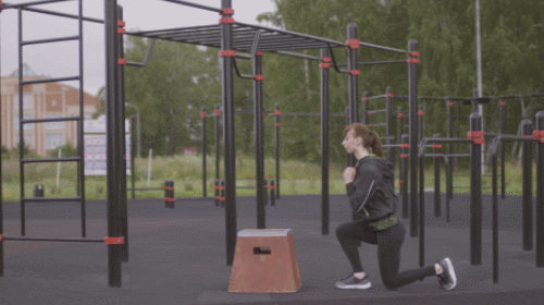 도구 앞에 서서 준비하세요. 왼쪽 다리는 뒤로 뻗으면서 런지 동작을 진행합니다. 왼발을 당기면서 도구 위에 올라서서 오른발을 뒤로 뻗으세요. 오른발을 바닥에 착지하고 왼발을 뒤로 뻗습니다. 런지 동작으로 연결하세요. 30초 운동 후, 반대편 다리로 30초 반복합니다.