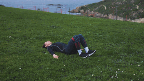 매트에 누운 상태로 시작하세요. 다리는 바닥과 90도 각도로 높이 들어줍니다. 손을 머리 위로 뻗으세요. 상체를 일으키면서 팔을 당겼다가 원래 자세로 돌아갑니다. 크런치 동작을 1분 동안 진행합니다. 다리는 들고 있는 상태에서 운동하세요.