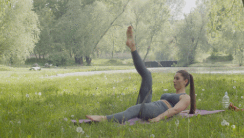 매트에 누운 상태로 시작하세요. 상체를 약간 일으켜서 복부를 압박합니다. 다리도 공중으로 들어주세요. 왼발을 공중으로 들었다가 내리면서 오른발을 공중으로 들어줍니다. 다리를 번갈아 움직이세요. 1분 동안 진행합니다. 밴드를 사용하여 운동 효과를 높이세요.