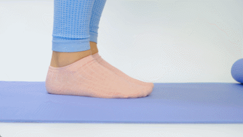 매트에 서서 호흡을 정리합니다. 발꿈치를 들었다가 내리는 동작을 진행하면 되는데요. 발꿈치를 들어서 최대한 버텼다가 천천히 원래 자세로 돌아옵니다. 한 발씩 들거나 앞뒤로 드는 동작을 추가할 수 있는데요. 1분 동안 진행합니다.