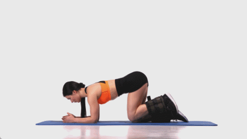 매트에 네발기기로 엎드린 상태로 준비합니다. 팔꿈치를 구부려서 팔뚝으로 버티세요. 왼쪽 다리는 뒤로 완전히 뻗었다가 당겨줍니다. 30초 동안 운동하세요. 이번에는 오른쪽 다리를 뒤로 뻗었다가 당기면서 운동하세요. 30초 반복합니다.