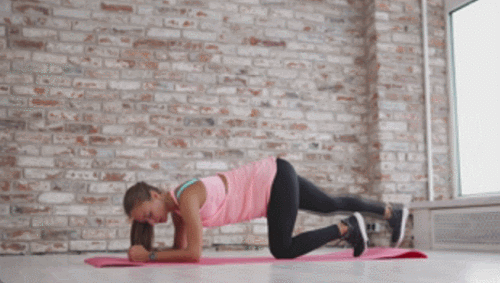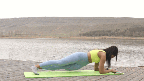 매트에 팔뚝을 대고 엎드리는 팔꿈치 플랭크 자세를 만듭니다. 엉덩이를 오른쪽으로 내렸다가 돌아오고, 왼쪽으로 내렸다가 돌아오면, 1회가 완료됩니다. 상체는 흐트러지지 않도록 주의하고, 엉덩이를 움직이며 1분간 운동합니다.