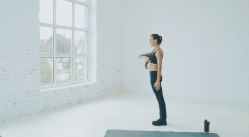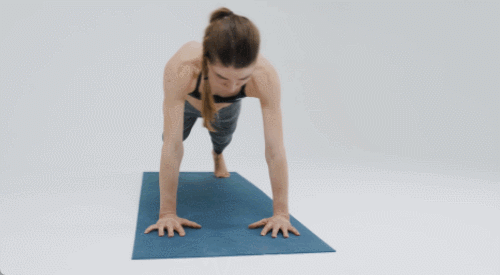 매트에 서서 시작하세요. 상체를 숙이면서 손을 바닥에 짚습니다. 다리를 점프하여 플랭크 자세를 만드세요. 다시 점프하여 다리를 당기고, 상체를 일으켜 세웁니다. 1분 동안 천천히 반복하세요.