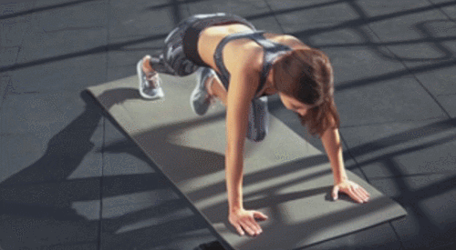 매트에 손바닥을 대고 엎드립니다. 팔꿈치를 완전히 편 상태를 유지하세요. 왼쪽 다리를 당겼다가 되돌리고, 오른쪽 다리를 당겨줍니다. 다리를 번갈아 움직이면서 1분 동안 운동하면 되는데요. 속도를 빠르게 높이면서 진행합니다.