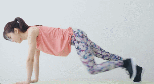 플랭크 자세로 매트에 엎드려서 시작합니다. 왼발을 당기고, 오른발을 당겨주세요. 점프 동작과 함께 원래 자세로 돌아갑니다. 1분 동안 반복하세요. 운동 중에는 시선을 바닥으로 향하세요. 팔꿈치를 완전히 편 상태로 유지합니다.
