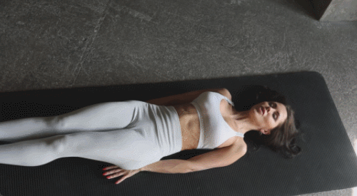 매트에 누운 상태에서 손은 골반 아래로 위치합니다. 다리는 공중으로 들어서 복부를 자극하세요. 다리 사이가 벌어지지 않도록 하고, 발끝은 뻗은 상태를 유지합니다. 1분 동안 레그레이즈 동작을 반복하세요.