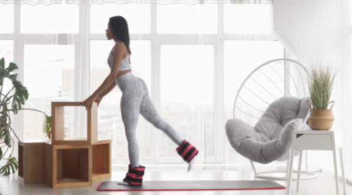 도구를 잡고 바닥에 서서 준비하세요. 균형을 잃지 않도록 주의합니다. 오른발을 뒤로 뻗으면서 킥 동작을 진행하세요. 30초 운동합니다. 이번에는 왼발을 뒤로 뻗으면서 킥 동작을 반복합니다. 30초 운동하세요. 시선은 정면을 바라봅니다.