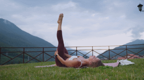 매트에 등을 대고 눕습니다. 무릎을 당겨서 세우세요. 왼쪽 다리는 공중으로 뻗어줍니다. 무릎을 최대한 펴주세요. 양손으로 허벅지를 감싸줍니다. 발끝을 뻗었다가 당기면서 운동하세요. 30초 진행합니다. 다리를 바꿔서 30초 운동하세요.