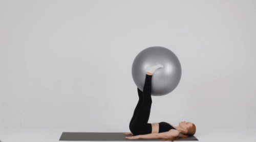 매트에 등을 대고 누워서 시작합니다. 다리 사이에는 짐볼을 끼우세요. 상체는 안정적으로 바닥에 고정합니다. 다리에 힘을 주고 짐볼을 천천히 들어 올립니다. 천천히 바닥으로 내리세요. 1분 동안 다리를 드는 동작을 반복합니다.
