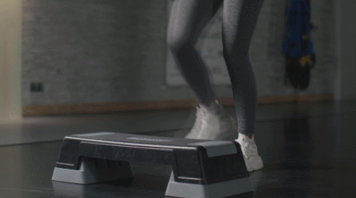 스텝박스나 오를 수 있는 도구 앞에 서서 시작하세요. 오른발을 도구 위에 올리고, 왼발을 도구 위에 올리세요. 오른발을 바닥으로 내리고, 왼발을 내리면 1회가 완료됩니다. 1분 동안 발을 움직이면서 운동하세요. 속도를 조절하면서 운동합니다.