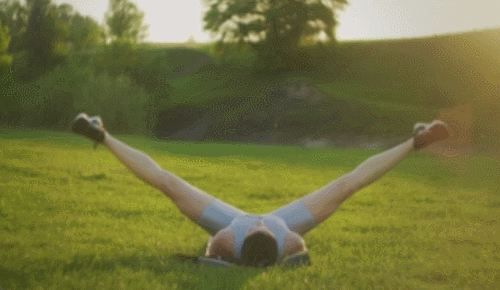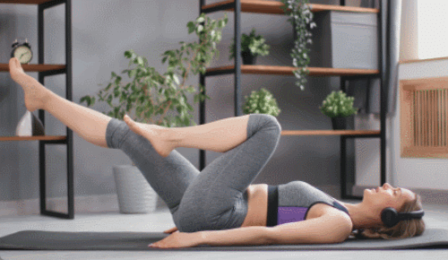 매트에 누운 상태로 무릎을 세웁니다. 오른쪽 다리를 공중으로 들어주세요. 시계 방향으로 원을 그리는 것처럼 돌려주세요. 이번에는 왼쪽 다리를 들고, 동일하게 돌려줍니다. 1분 동안 반복하세요.