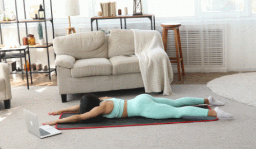 매트에 배를 대고 엎드려서 준비합니다. 팔은 앞으로 뻗으세요. 상체와 하체를 동시에 공중으로 들어올립니다. 이때 손끝과 발끝을 최대한 뻗어주면 되는데요. 몸을 늘여준다는 느낌으로 진행합니다. 시선은 바닥을 응시하세요. 1분 동안 운동합니다.