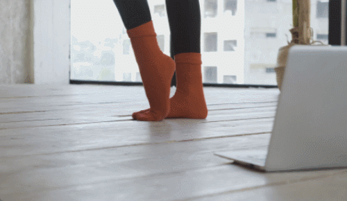 바닥에 서서 발꿈치를 번갈아 들어주는 동작만으로도 운동 효과를 기대할 수 있는데요. 왼쪽 발꿈치를 들었다가 내리면서 오른쪽 발꿈치를 들어주세요. 천천히 반복하면서 운동하고, 균형을 유지하면서 1분간 진행합니다.