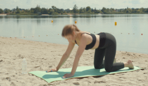 고양이가 기지개를 켜는 것과 같은 자세를 만드세요. 네발기기 자세로 바닥에 엎드립니다. 상체를 바닥으로 낮추면서 스트레칭을 진행하세요. 엉덩이와 무릎의 위치를 맞추고, 호흡을 유지합니다. 1분 동안 반복하세요.