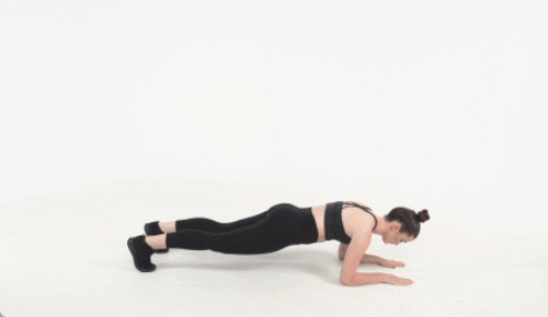 팔꿈치 플랭크 자세에서 시작합니다. 엉덩이를 들어서 돌고래 플랭크 자세로 연결하는 동작을 반복하면 되는데요. 팔뚝으로 몸을 지탱하고, 균형이 무너지지 않도록 자세를 유지합니다. 1분 동안 2가지 동작을 반복하고, 시선은 바닥을 응시하세요.