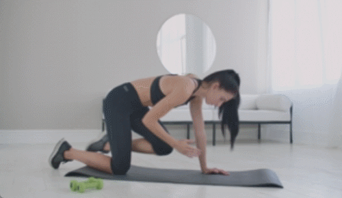 매트에 네발기기 자세로 엎드리세요. 오른팔을 앞으로 뻗으면서 왼발을 뒤로 뻗습니다. 복부를 향해 당겼다가 다시 펴줍니다. 30초 진행 후, 왼팔과 오른발로 동일하게 30초 진행하세요. 호흡을 유지하며 운동합니다.