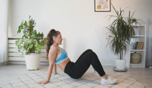 손과 발을 바닥으로 누르면서 몸을 공중으로 띄웁니다. 테이블 자세를 만드세요. 오른손과 왼발을 공중으로 동시에 들어줍니다. 손으로 발을 터치하고 돌아오세요. 왼손과 오른발을 공중으로 들어주세요. 손으로 발을 터치하고 돌아옵니다. 1분간 반복합니다.