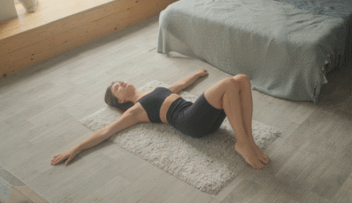 매트에 누워서 팔을 옆으로 펼칩니다. 양손의 위치가 동일하도록 맞추세요. 무릎을 세웁니다. 무릎을 오른쪽으로 천천히 넘기세요. 이때 시선은 왼쪽으로 향합니다. 30초 반복하세요. 이번에는 무릎을 왼쪽으로 넘기고, 시선은 오른쪽으로 돌립니다. 30초 진행하세요.