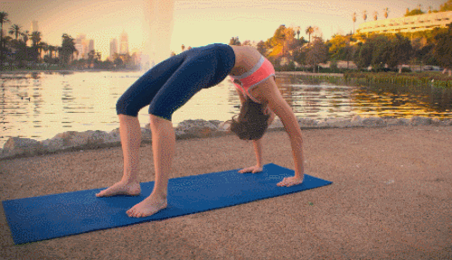 매트에 등을 대고 누운 상태로 시작하세요. 손과 발을 바닥으로 누르면서 몸을 공중으로 띄웁니다. 몸을 전체적으로 확장시킨다는 느낌으로 자세를 유지하면 되는데요. 머리를 젖히고, 운동 강도를 높이세요. 1분 동안 진행합니다.