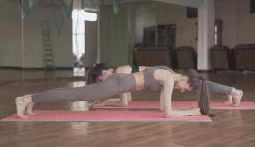 팔꿈치 플랭크 자세에서 시작합니다. 엉덩이를 들어서 돌고래 플랭크 자세로 연결하는 동작을 반복하면 되는데요. 팔뚝으로 몸을 지탱하고, 균형이 무너지지 않도록 자세를 유지합니다. 1분 동안 2가지 동작을 반복하고, 시선은 바닥을 응시합니다.
