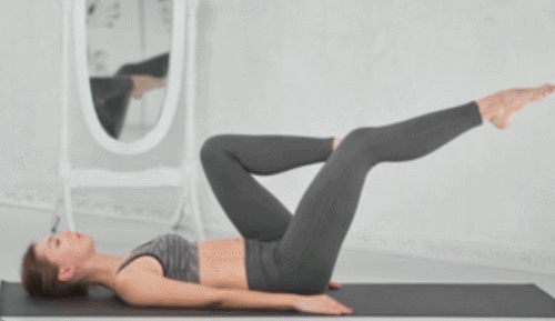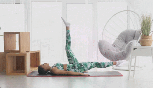 매트에 등을 대고 누워서 준비하세요. 손은 바닥을 짚거나 골반 아래로 이동합니다. 다리는 공중으로 들어주세요. 복부를 향해 당겼다가 내리면 되는데요. 무릎은 살짝 구부려도 무방합니다. 1분 동안 운동하세요.