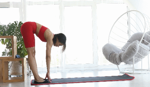 바닥에 서서 상체를 앞으로 숙입니다. 손을 앞으로 짚으면서 움직이세요. 플랭크 자세를 만듭니다. 무릎을 번갈아 크로스 방향으로 당겨주세요. 다시 역순으로 손을 짚으면서 원래 자세로 돌아오면 1회가 완료됩니다. 1분간 반복하세요.
