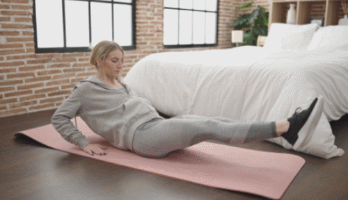 매트에 엉덩이를 대고 앉아서 손바닥은 바닥에 붙이세요. 상체를 뒤로 젖히면서 다리를 공중으로 띄웁니다. 상체를 일으키면서 다리를 당겨주세요. 복부를 전체적으로 압박하고, 원래 자세로 돌아갑니다. 1분간 반복하세요.