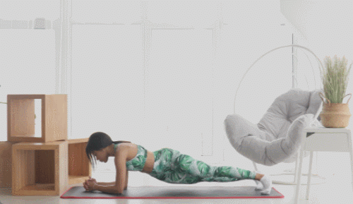 플랭크와 사이드 플랭크를 번갈아 진행하면서 운동 효과를 높이세요. 매트에 엎드린 상태로 기본자세를 잡습니다. 왼손으로 버티면서 오른손을 공중으로 개방하고, 사이드 플랭크 자세를 만들었다가 돌아옵니다. 이번에는 반대편으로 반복하세요. 1분간 운동합니다.