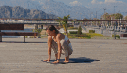 매트에 플랭크 자세로 엎드려서 시작하세요. 발을 손목 방향으로 최대한 당기면서 엉덩이를 들어주세요. 엉덩이를 내리면서 자세를 낮춥니다. 이때 발꿈치를 들어줍니다. 다시 엉덩이를 들고, 발을 뒤로 밀면서 다운도그 자세로 전환합니다. 플랭크 자세로 돌아오면, 1회가 완료됩니다. 1분간 반복하세요.