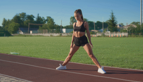 바닥에 서서 다리를 최대한 넓게 벌려줍니다. 왼쪽 무릎을 구부리면서 상체를 왼쪽으로 이동합니다. 이때 오른쪽 다리는 완전히 펴주세요. 이번에는 오른쪽 무릎을 구부리면서 왼쪽 다리를 펴줍니다. 상체를 오른쪽으로 이동하세요. 1분 동안 반복합니다.