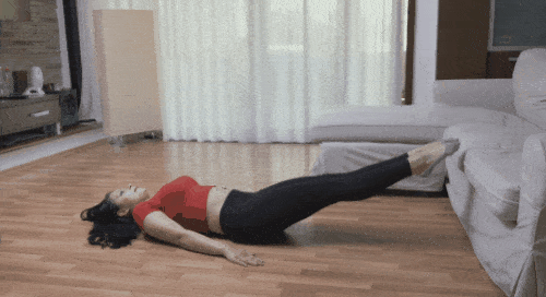 매트에 누워서 팔은 바닥에 붙입니다. 다리를 공중으로 들어주세요. 발끝은 뻗은 상태를 유지합니다. 무릎을 구부리면서 다리를 당겼다가 다시 뻗는 동작을 진행하세요. 1분 동안 반복합니다. 운동 중에는 허리가 최대한 뜨지 않도록 주의하세요.