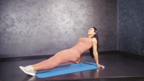 리버스 플랭크 자세를 유지하면서 한쪽 다리를 뻗었다가 돌아오는 동작을 추가하세요. 몸을 곧게 뻗고, 팔꿈치는 펴줍니다. 오른쪽 다리를 오른쪽으로 뻗었다가 돌아오고, 왼쪽 다리로 동일하게 반복하세요. 1분 동안 운동합니다.