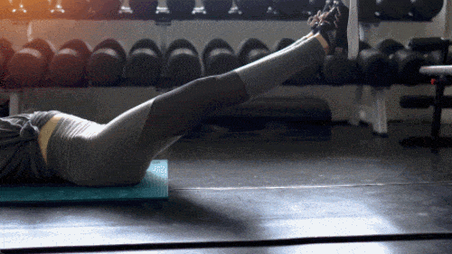 매트에 등을 대고 눕습니다. 손은 머리 뒤로 보내서 잡으세요. 다리를 공중으로 띄웁니다. 무릎을 구부리면서 당겼다가 펴주는 동작을 반복하세요. 복부에 힘을 주면서 바닥으로 눌러줍니다. 허리가 뜨지 않도록 하세요. 1분간 운동합니다.