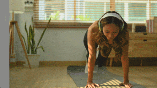 매트에 엎드려서 플랭크 자세로 시작합니다. 오른쪽 무릎을 왼쪽 팔꿈치를 향해 당겼다가 되돌리세요. 왼쪽 무릎을 오른쪽 팔꿈치로 당겼다가 되돌립니다. 다리를 번갈아 크로스 방향으로 당겨주면 되는데요. 1분 동안 운동합니다.