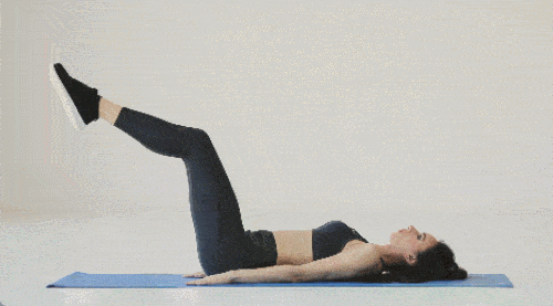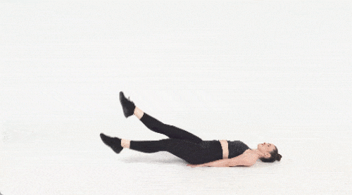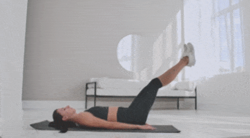 매트에 등을 대고 누워서 준비하세요. 손은 바닥을 짚거나 골반 아래로 이동합니다. 다리는 공중으로 들어주세요. 복부를 향해 당겼다가 내리면 되는데요. 무릎은 살짝 구부려도 무방합니다. 1분 동안 운동하세요.