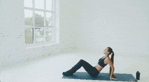 매트에 엉덩이를 대고 앉으세요. 다리는 펴줍니다. 손과 발을 누르면서 엉덩이를 들어주세요. 테이블 모양으로 자세를 만듭니다. 엉덩이를 바닥으로 내렸다가 드는 동작을 반복하세요. 1분 동안 진행합니다. 운동 중에는 엉덩이가 바닥에 닿지 않도록 합니다.
