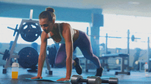 매트에 플랭크 기본자세로 엎드리세요. 오른쪽 무릎을 당겼다가 되돌리면서 왼쪽 무릎을 당겨줍니다. 무릎을 번갈아 빠르게 당겨주면 되는데요. 팔꿈치는 펴주고, 시선은 바닥을 바라봅니다. 1분 동안 진행하세요.
