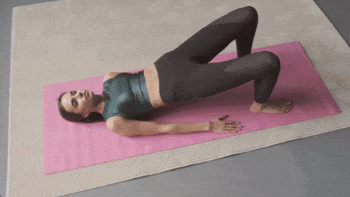 매트에 누운 상태에서 무릎을 세우고, 발은 바닥에 고정하도록 합니다. 엉덩이를 공중으로 들어주면서 브릿지 자세를 만드세요. 엉덩이에 힘을 주면서 바닥으로 내렸다가 천천히 다시 들어줍니다. 업다운 동작을 1분 동안 반복하여 진행합니다.