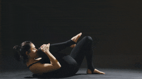 매트에 누워서 시작하세요. 왼쪽 무릎은 세우고, 오른쪽 다리는 뻗어줍니다. 오른쪽 무릎을 상체 방향으로 당겨주세요. 이때 상체를 약간 일으키고, 양손으로 정강이를 감싸줍니다. 30초 운동하세요. 왼쪽 무릎을 당기면서 감싸는 동작으로 30초 반복합니다.