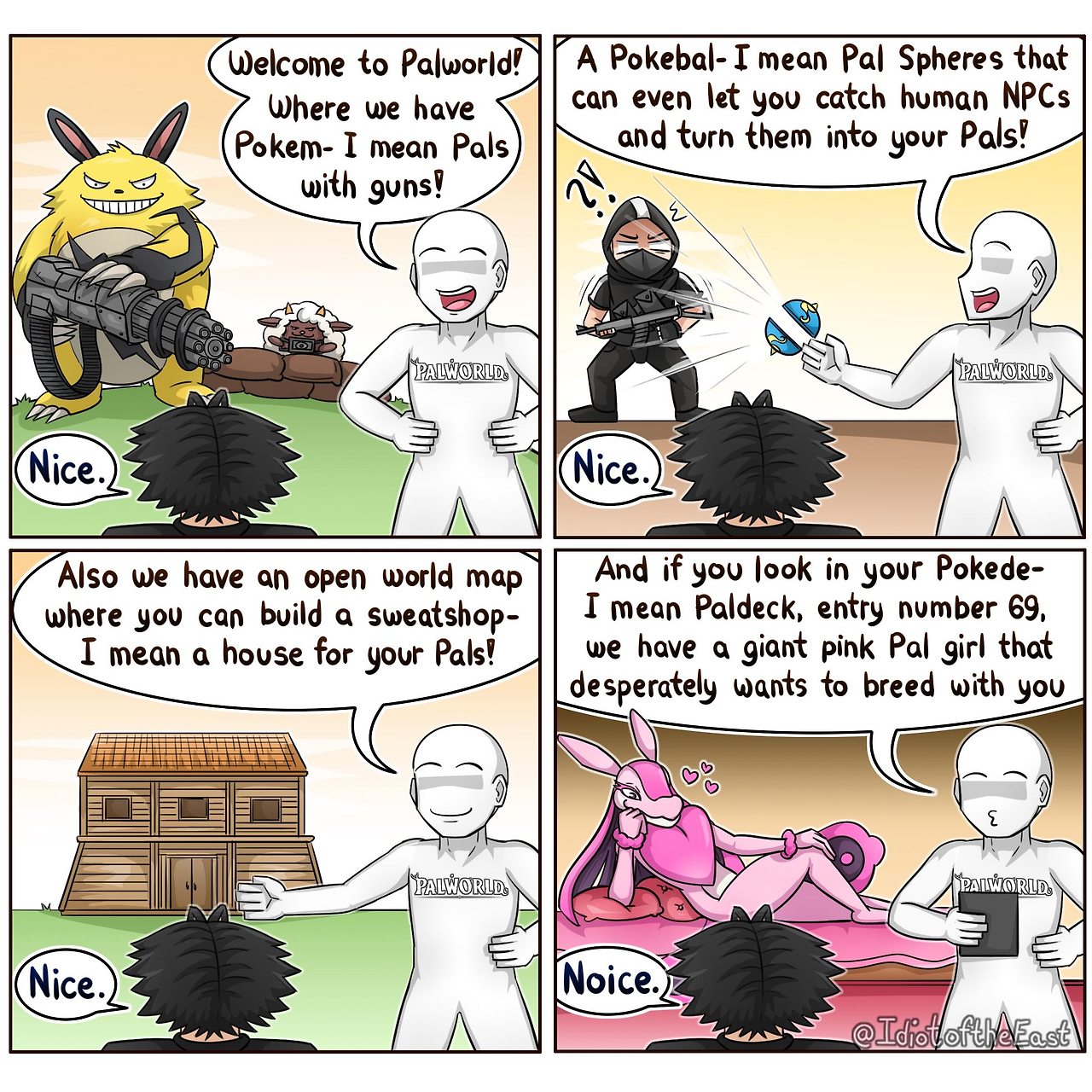 이 reddit 게시글은 단숨에 40k upvote를 받았다. 10일이 지난 현재에도 댓글이 달린다.PalWorld가 바이럴이 된 여러 가지 이유가 있겠지만.. (맛있는 짬뽕, 스팀 기록 경신, 제작 스토리 등) 1등 공신은 ‘포켓몬과 비슷한 캐릭터’ 임을 절대로 부정할 수 없다.