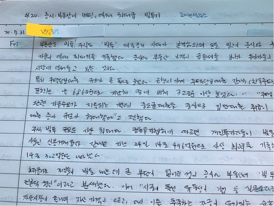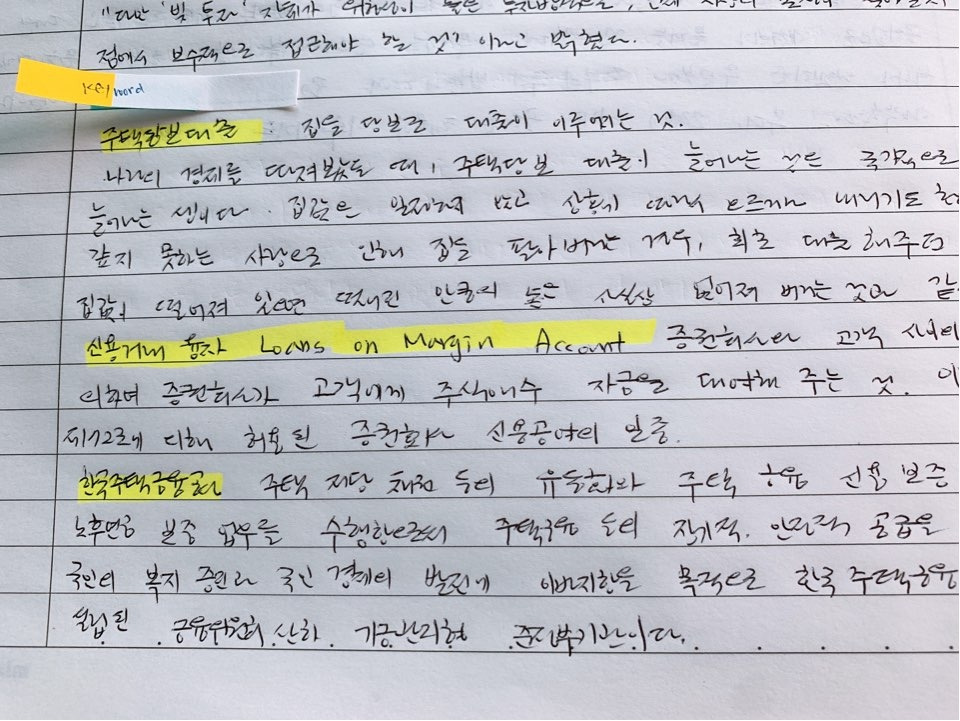 ② 키워드를 골랐다. 들어는 봤지만 설명할 수 없는 ‘개념’에 대해 정의를 따로 정리해 놓았다. 반드시 자필로 공책에 적어놨다. 시사논술은 시험지에 펜으로 답안을 작성하는 방식이라 수기 작성에 익숙해지기 위함이었다.
