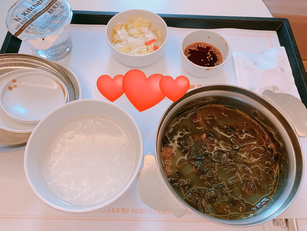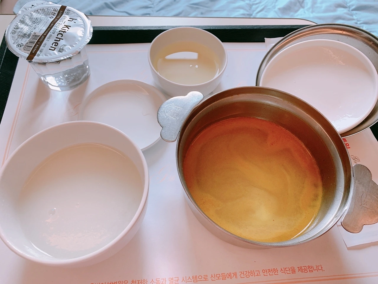 병실에 혼자 있으니 참 심심했다. 수액을 맞아 배가 고프진 않았는데, 먹는 재미마저 없으니 하루가 영 밋밋했다. 그러다가 출산 27시간, 금식 42시간 만에 드디어 첫 끼니와 영접했다. 내가 잘 회복하고 있다는 증거였다.