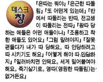 '왕따'라는 단어가 처음으로 신문에 등장한 시점은 1997년 3월이다(동아일보). 요즘 청소년이 습관적으로 사용하는 용어라고 설명하고 있다. 1988년 11월 경향신문 보도를 보면 따돌림을 당하지 않으려고 따돌림을 시킨다는 데까지 현상이 진화됐다. 어른이 끼어들 자리는 없다는 것을 당시 우리는 알고 있었다. 지금 피해자들도 알고 있을 것이다. 드라마 속의 문동은은 기대를 해보았으나 처참하게 배신당했다. 현실에서는 드라마처럼 처절하게 배신당하기보다는 그 비겁함에 실망하게 된다.