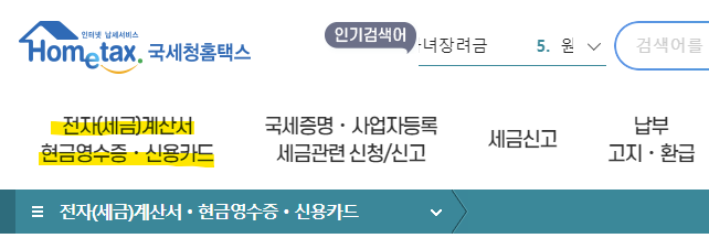 2. 전자세금계산서 발급 메뉴로 들어간다. 좌상단에 있고, 사업자로 전환해야 메뉴가 보인다