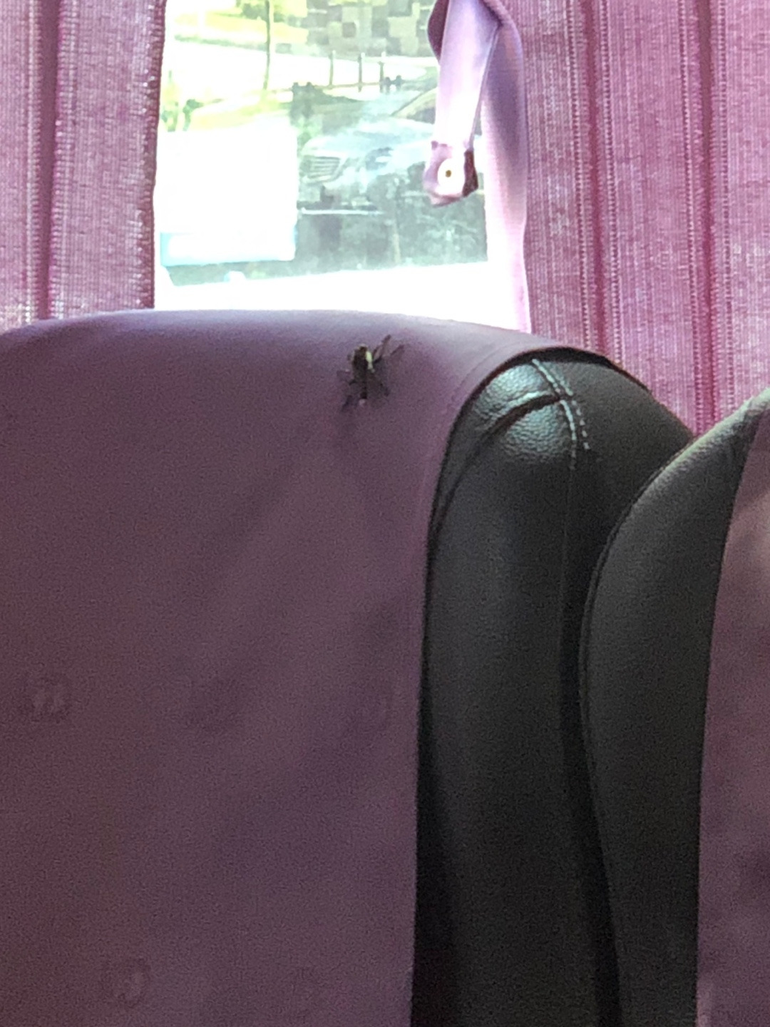 어제도 평소처럼 분당으로 향하는 붉은색 광역 버스에 몸을 실었다. 차고지 부근 정류장에서 타기에 보통 승객은 나밖에 없었다. 하지만 이 날은 달랐다. 네 번째 열, 안쪽 좌석, 머리 쿠션 위에 앉은 벌레와 정면으로 눈이 마주쳤다. 무슨 벌레인지는 잘 몰랐지만, 멀리서 봐도 사이즈는 거대했다. 아니, 이 분이 왜 여기에. 나중에 보니 버스 아저씨는 승객을 태운 뒤 꼭 오륙 초 뒤에 문을 닫는 버릇이 있었다. 바로 그때 이 불청객도 몸을 실은 게 틀림없었다. 다시 내릴까, 어정쩡하게 선 채로 깊은 번뇌에 빠졌다. 주말 동안 XXXX번 버스의 배차 시간은 아무리 짧아도 15분이었다. 35도가 넘는 폭염 속으로 돌아가느니 벌레에 쏘이는 쪽이 더 나아 보였다. 일단 벌레를 관찰할 수 있고, 혹 돌진해오더라도 충분히 방어할 만한 곳에 자리를 잡았다. 클리어 파일을 둘둘 말아 손에 쥐고 전투준비태세를 갖췄다. 그렇게 뒷좌석 벌레와의 불편한 여정이 시작됐다.