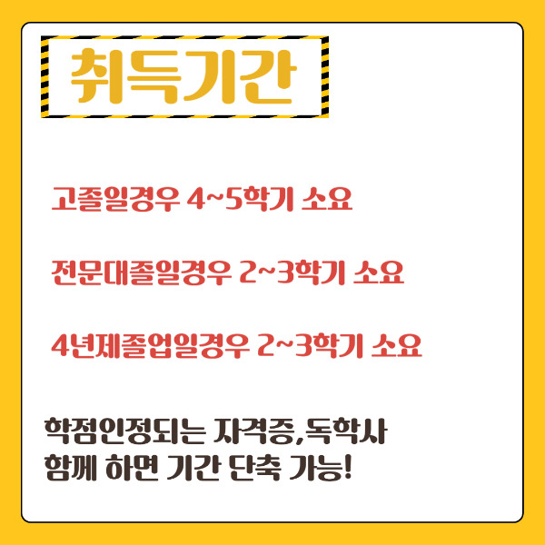 갖추는 취득기간은 각자 학력 조건 따라서 달랐어요