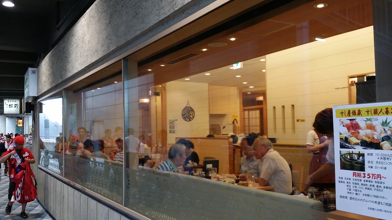 도쿄 돔에서만 볼 수 있는 특이한 모습 중 하나를 꼽자면 도쿄 돔 바깥에 전문 식당들이 죽 늘어서 있습니다.일본식, 중식, 양식, 심지어 한국식 식당도 눈에 띕니다. 재미있는 것은 이 식당에 손님들이 꽤 많습니다. 복잡한 야구장에서 야구를 보느니 여유롭게 앉아서 밥 먹으면서 즐기고 싶은 나이 좀 드신 넥타이 부대들이 상당수 눈에 보입니다. 야구 경기가 끝나면 한 번 주욱 둘러보시면 식당을 둘러보는 것도 또 하나의 재미입니다. (먹어보지는 않았지만) 사람들이 끊이지 않는 것으로 보아 전반적으로 맛이 나쁘지는 않은 것 같습니다.